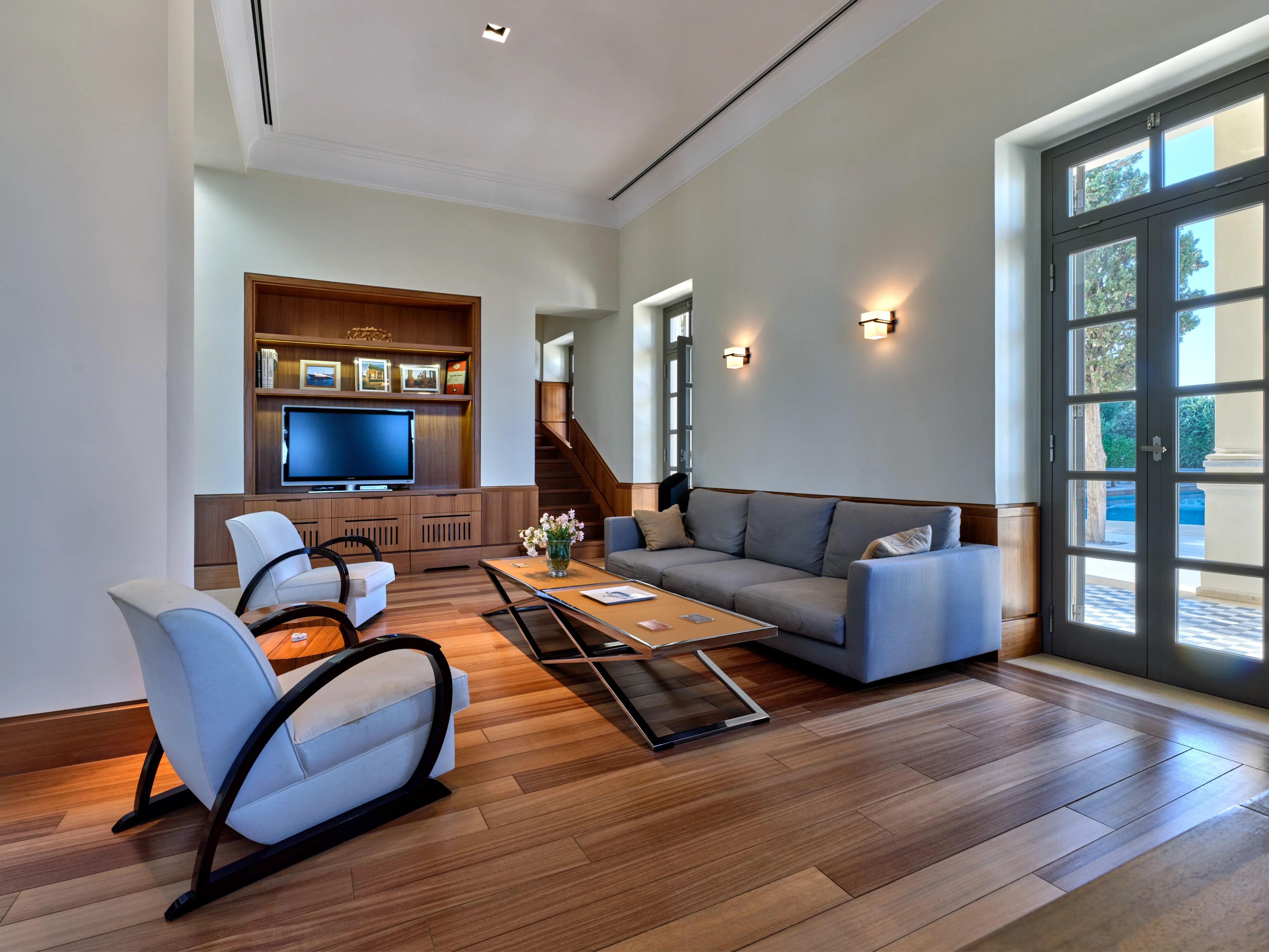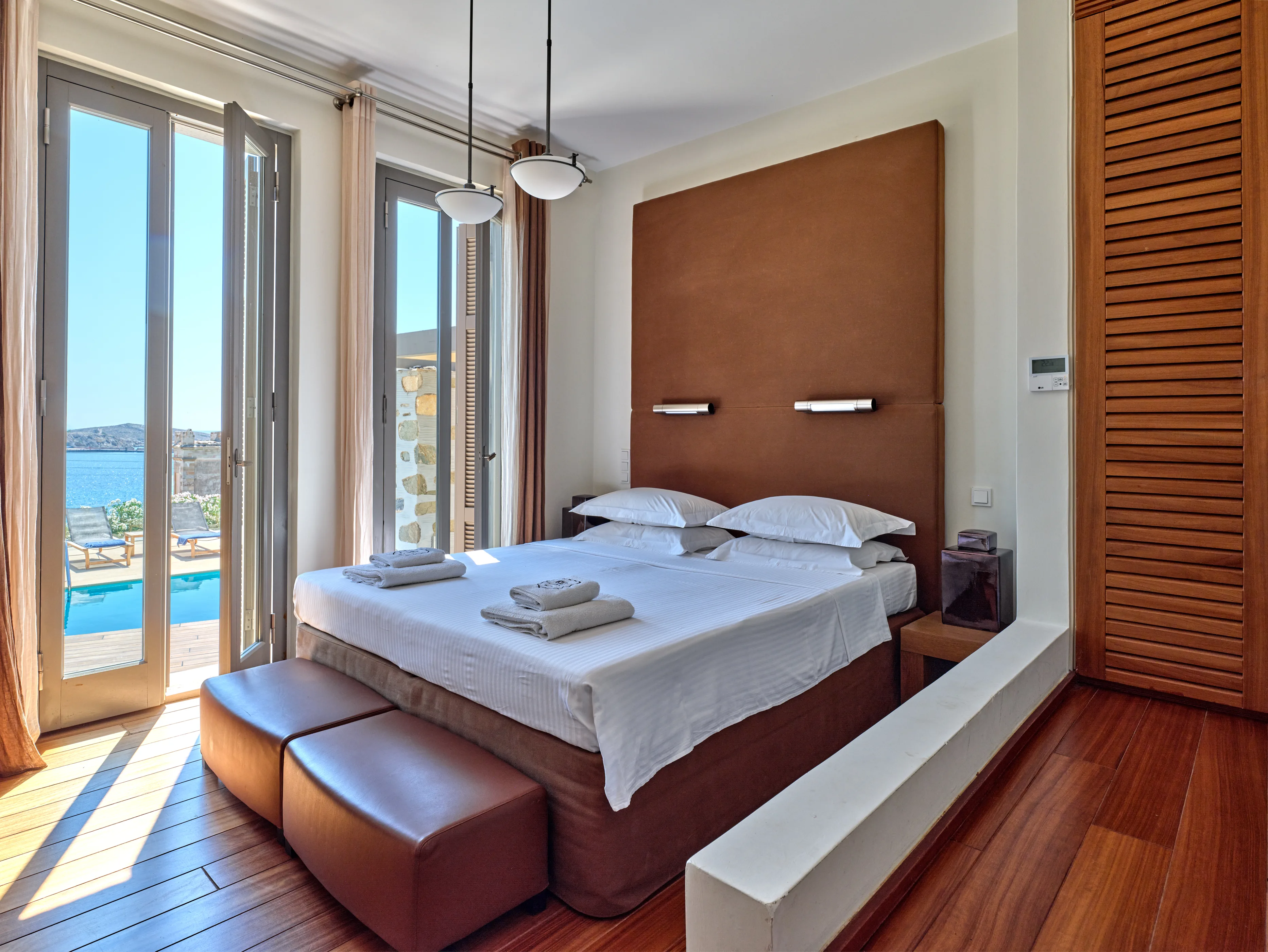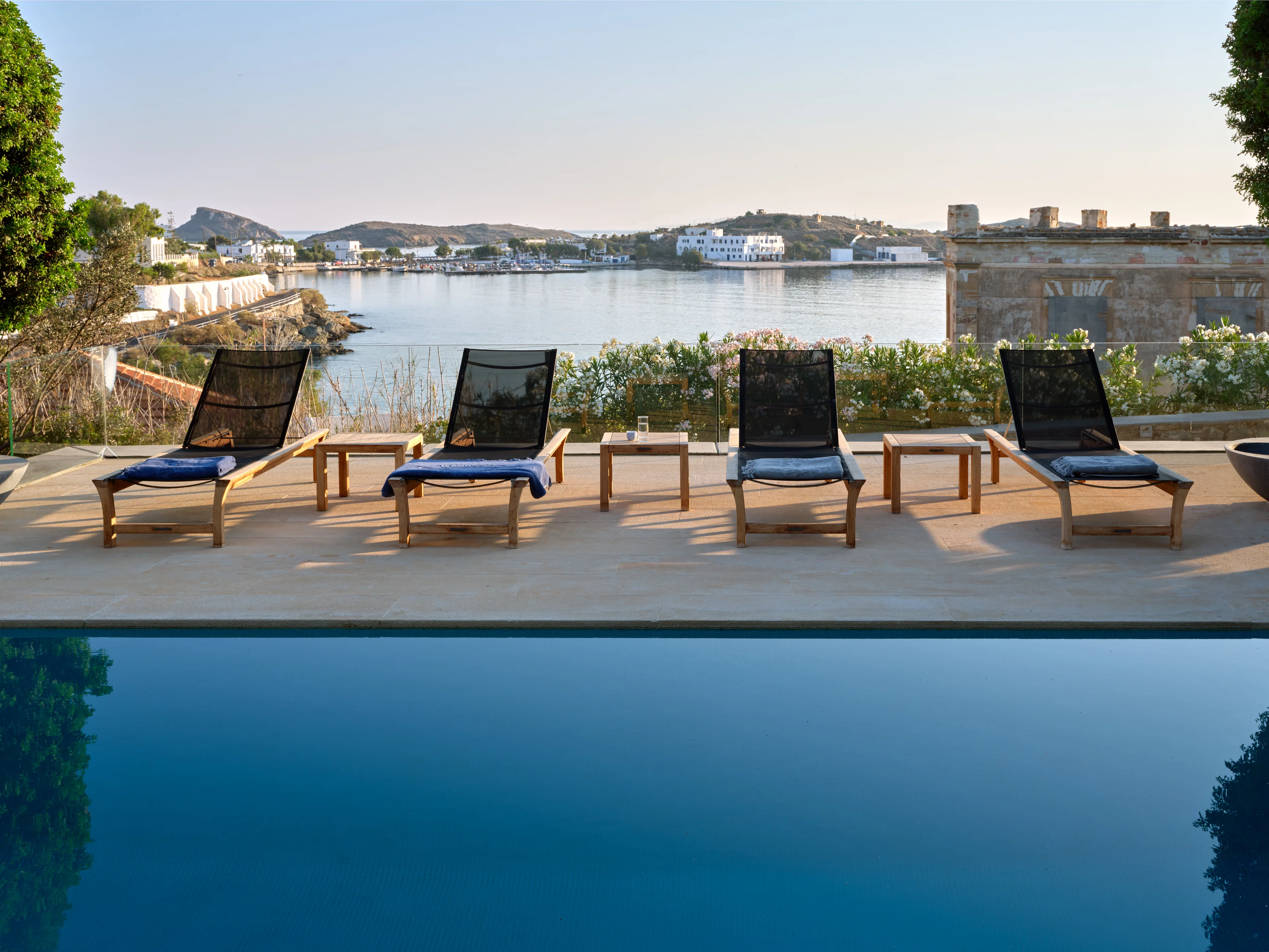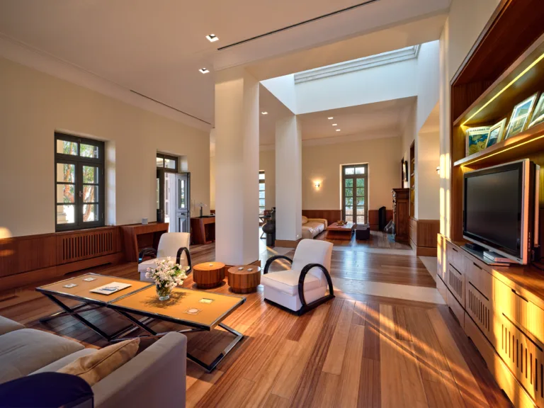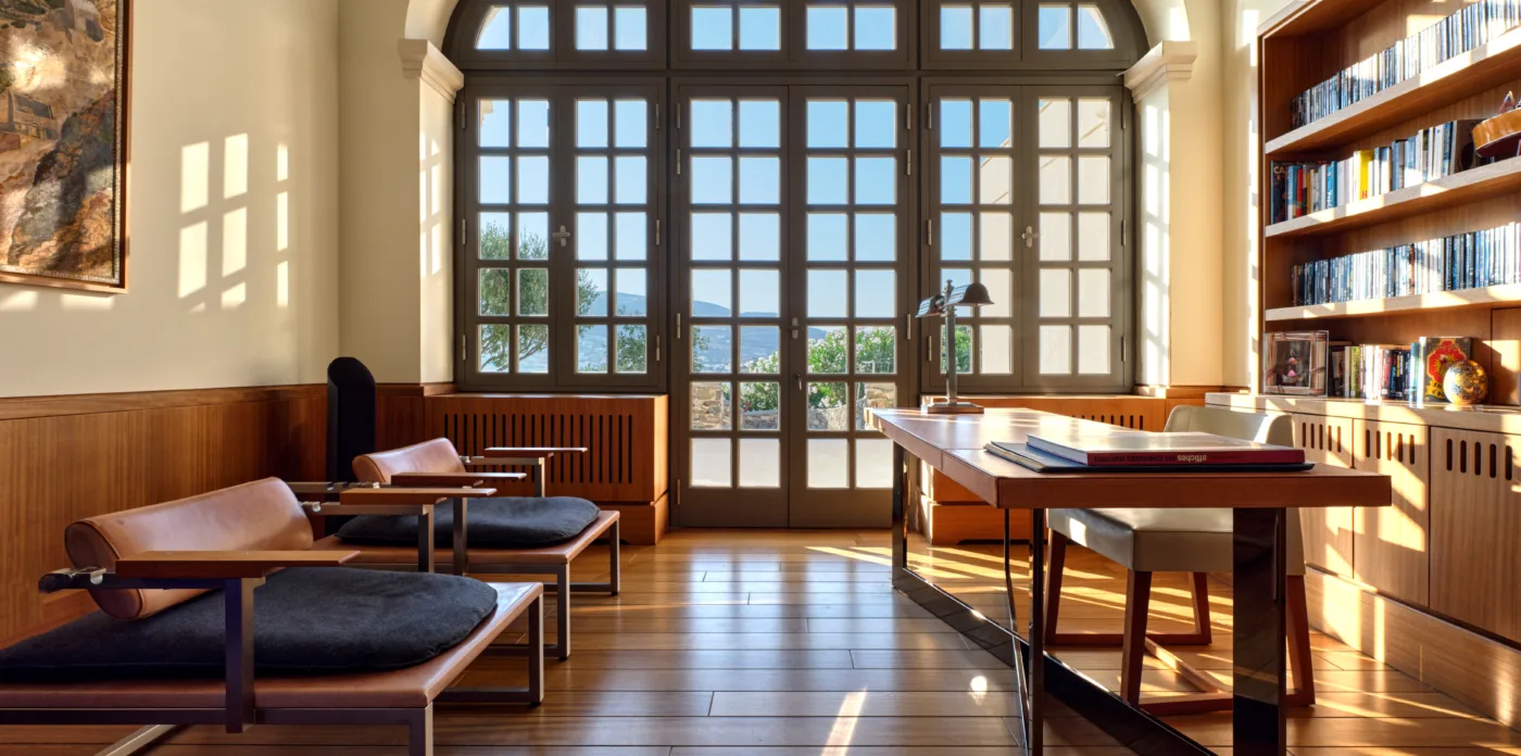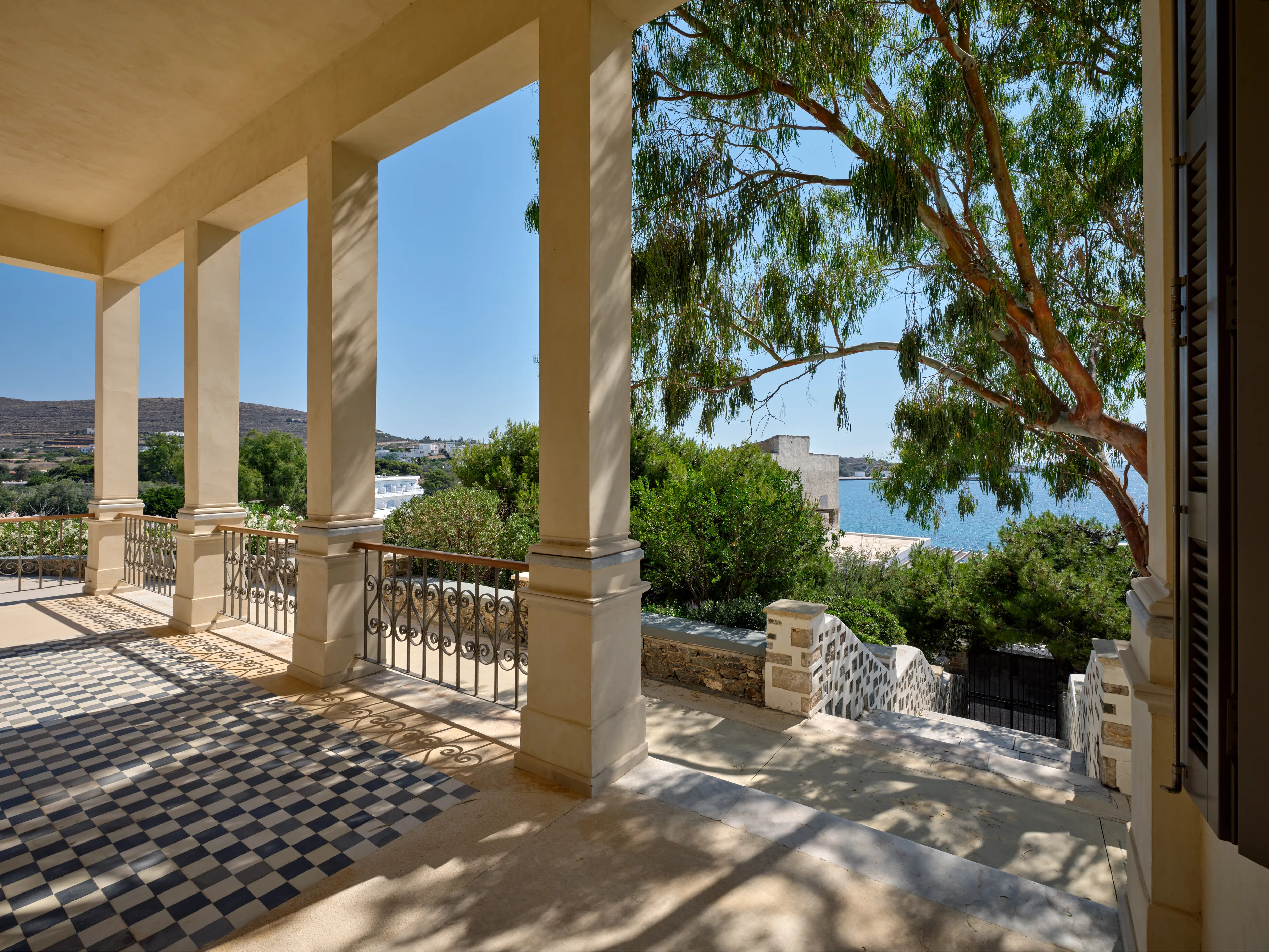 In one of the most prestigious locations on the island, Poseidonia, Eloise will enchant you at first sight. The stunning mansion has been carefully renovated by its owners to combine minimalism, art deco details and neoclassical features in both its indoor and outdoor areas.