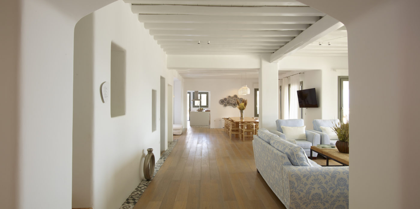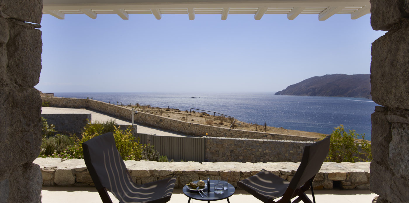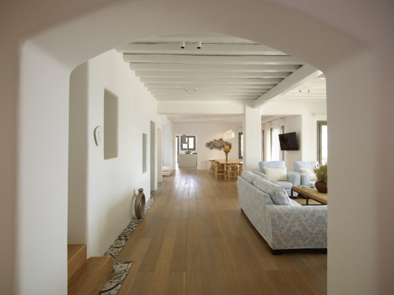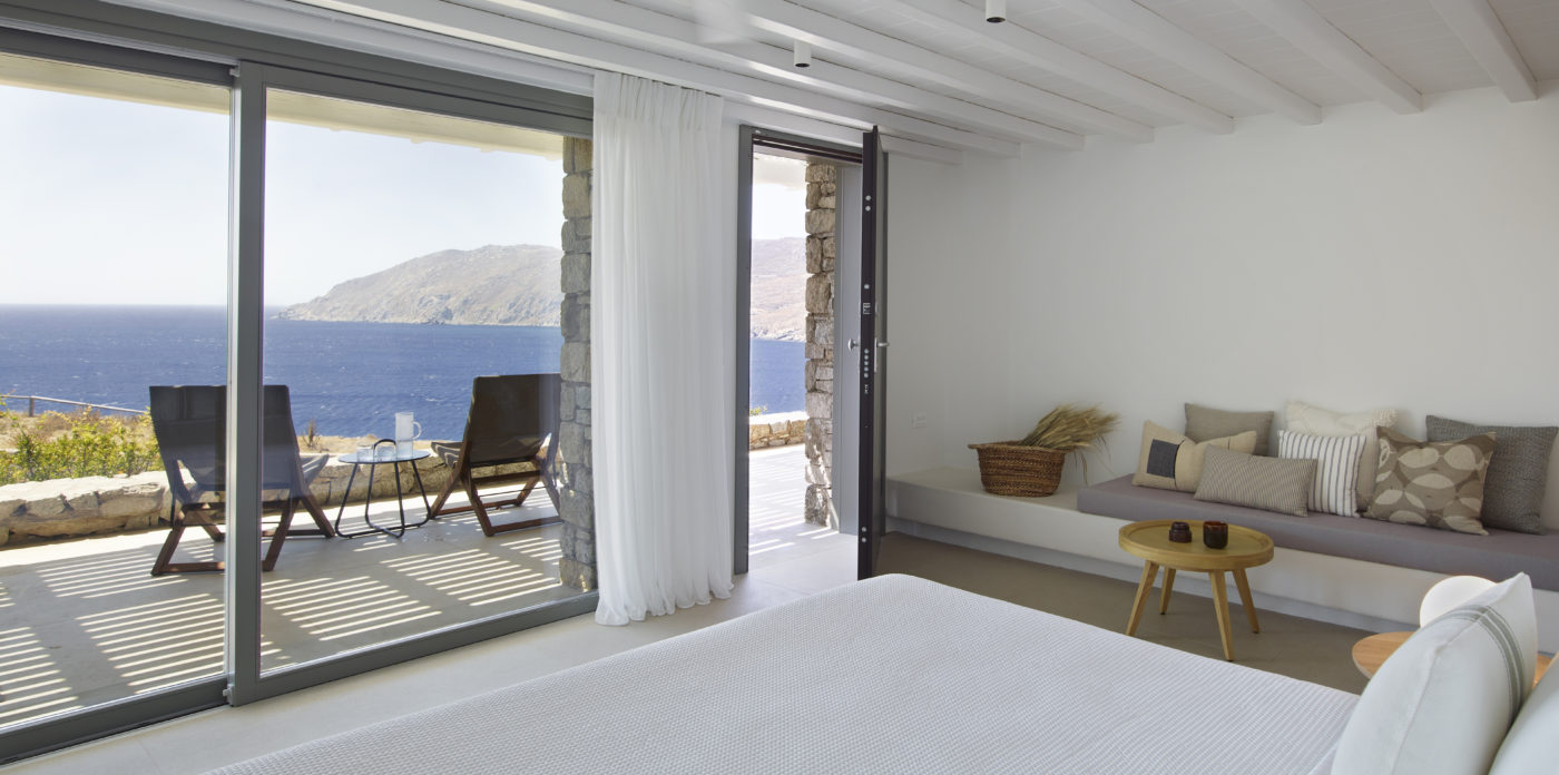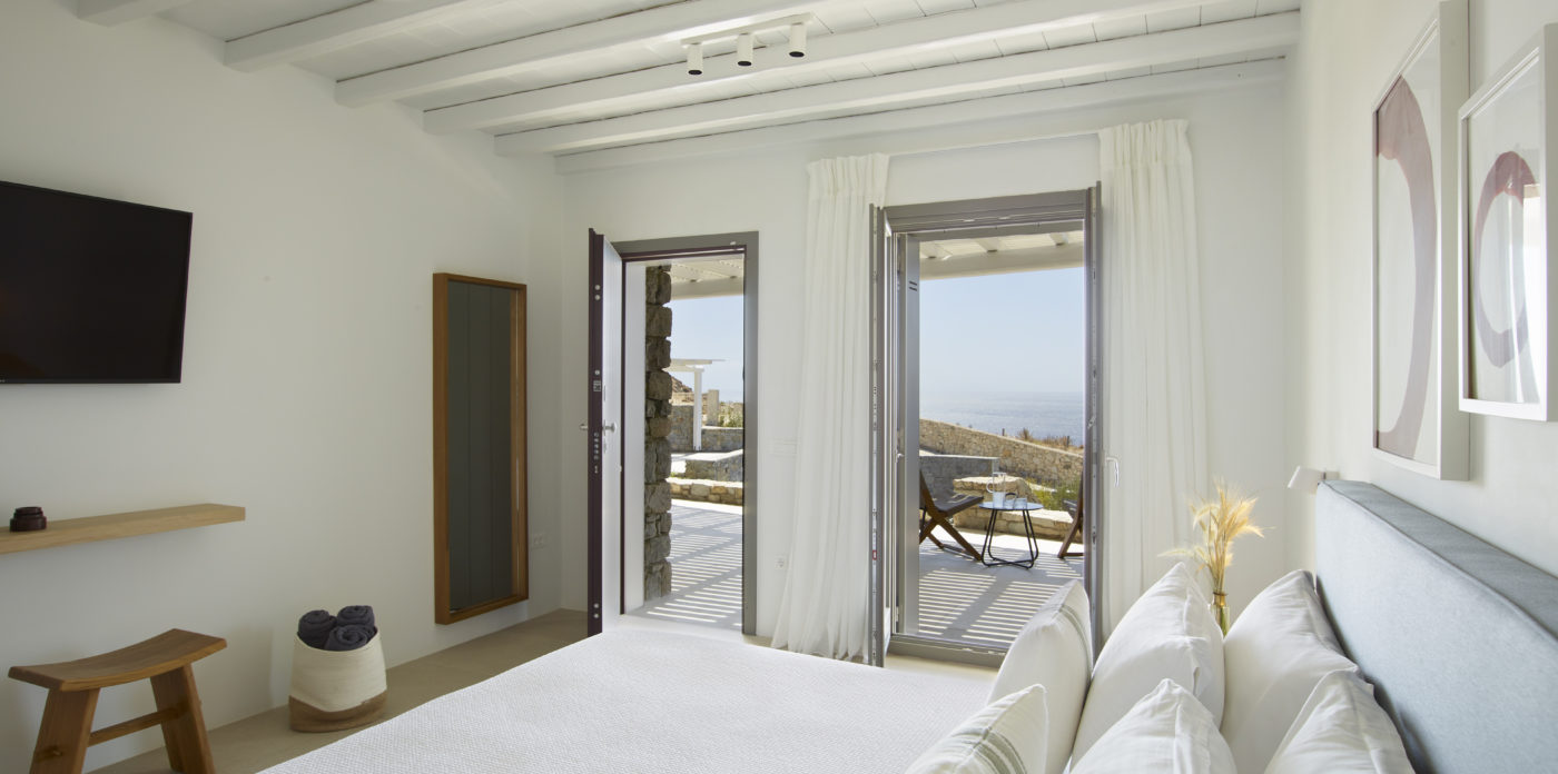 This enchanting beachfront villa is built on top of the sea in walking distance 1-3 minutes from the seaside and one of the most beautiful beaches of Mykonos. Perfectly situated above Kalo Livadi and a private, small, secluded beach just a few steps away.