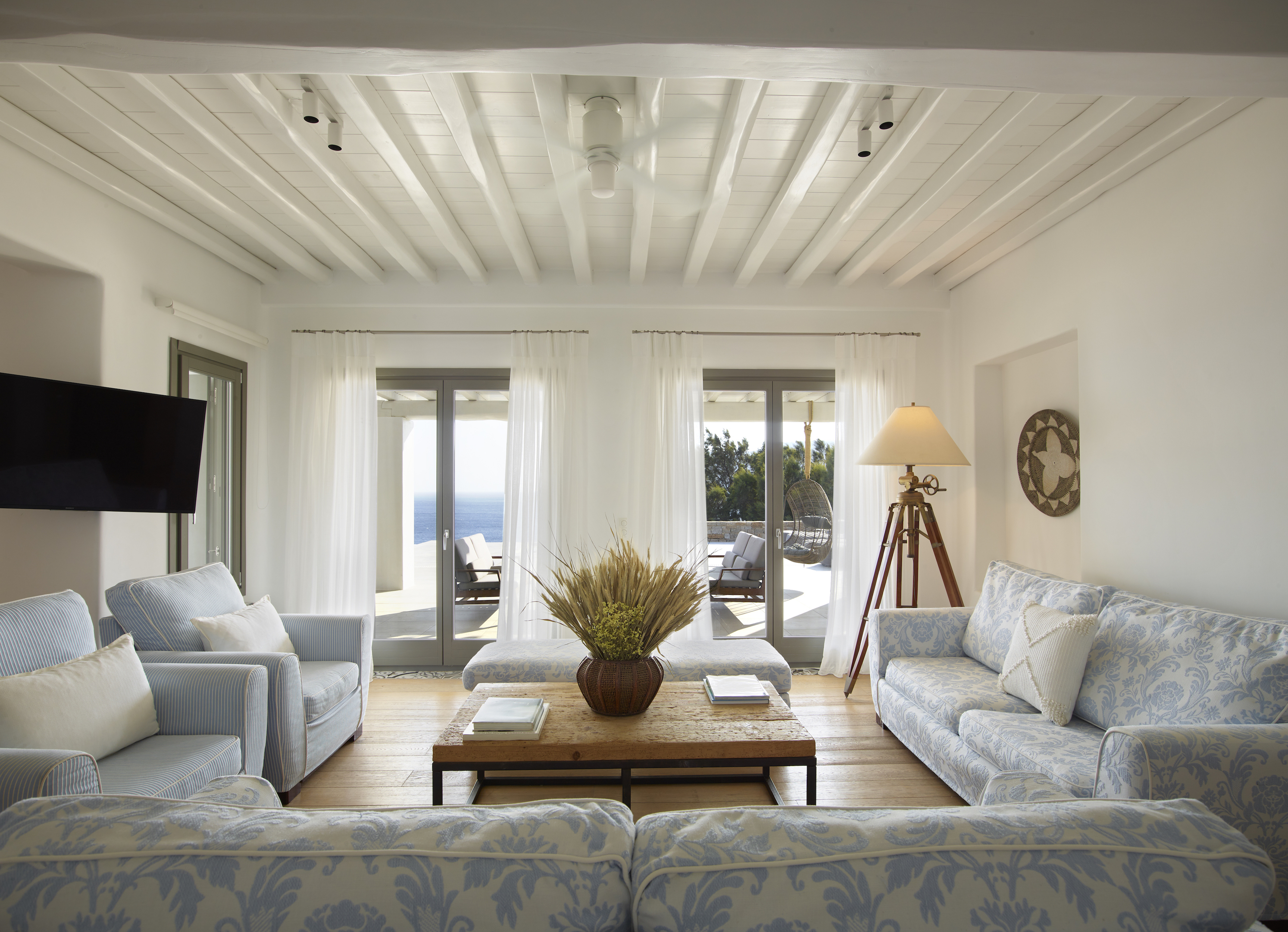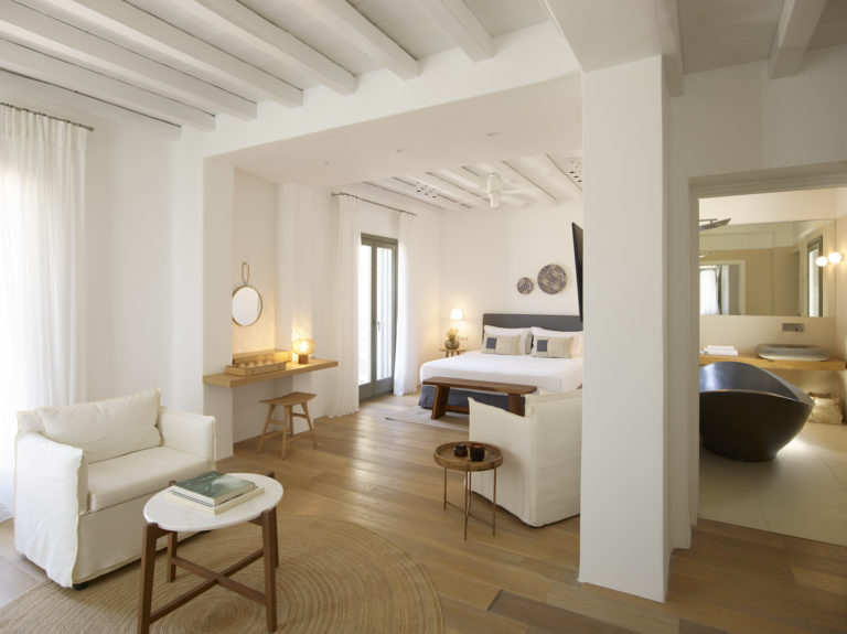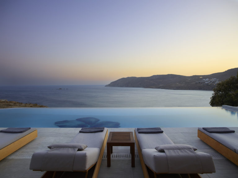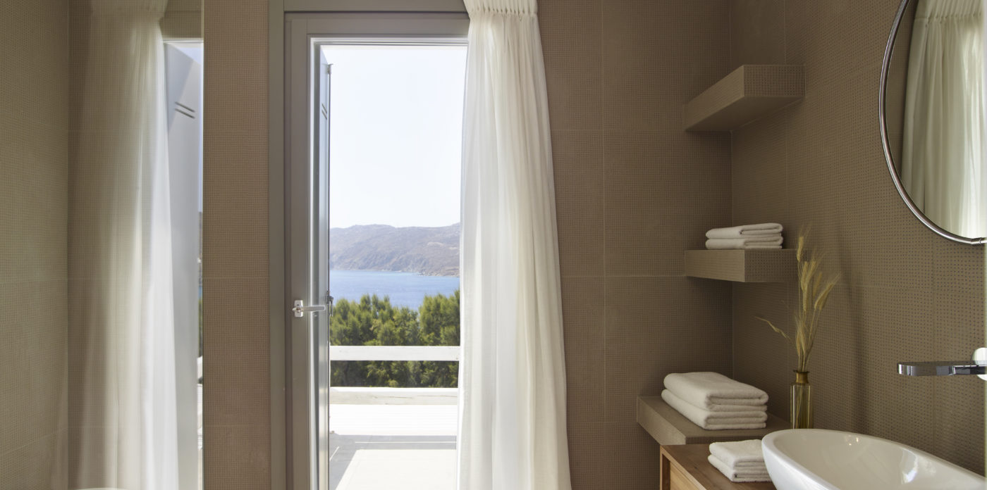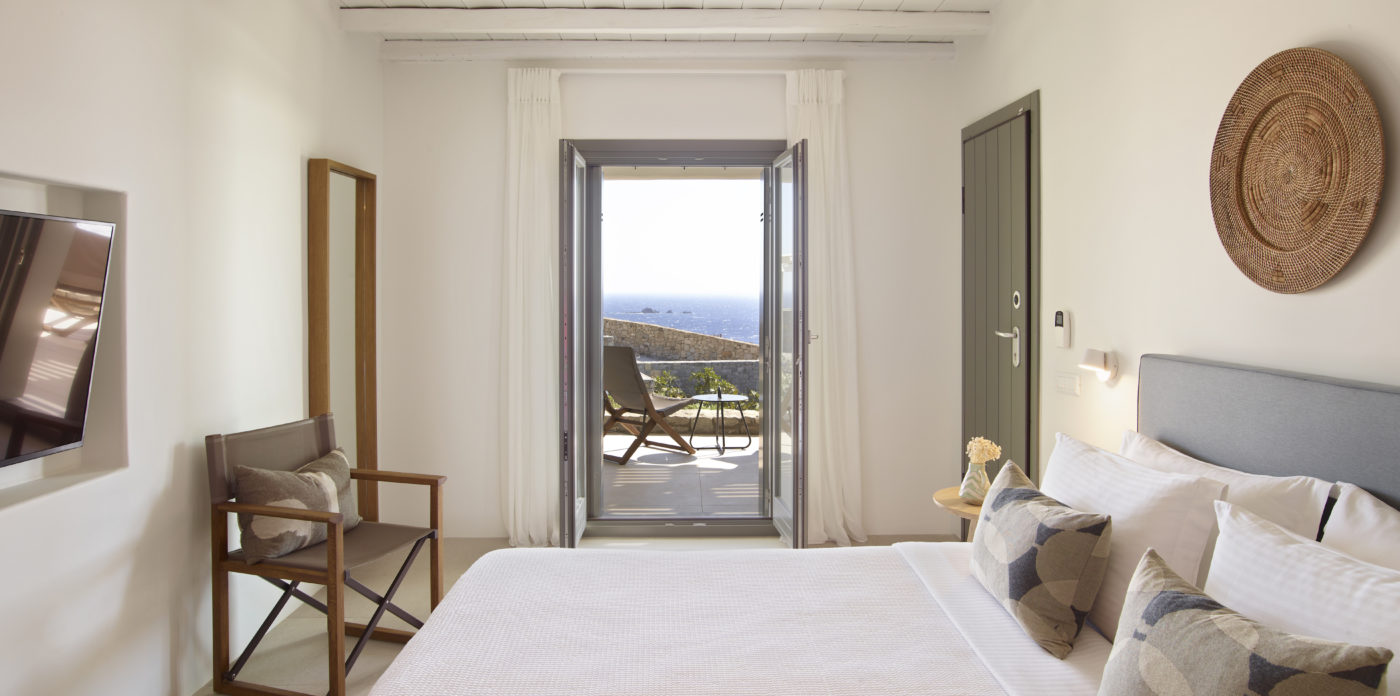 This enchanting beachfront villa is built on top of the sea in walking distance 1-3 minutes from the seaside and one of the most beautiful beaches of Mykonos. Perfectly situated above Kalo Livadi and a private, small, secluded beach just a few steps away.