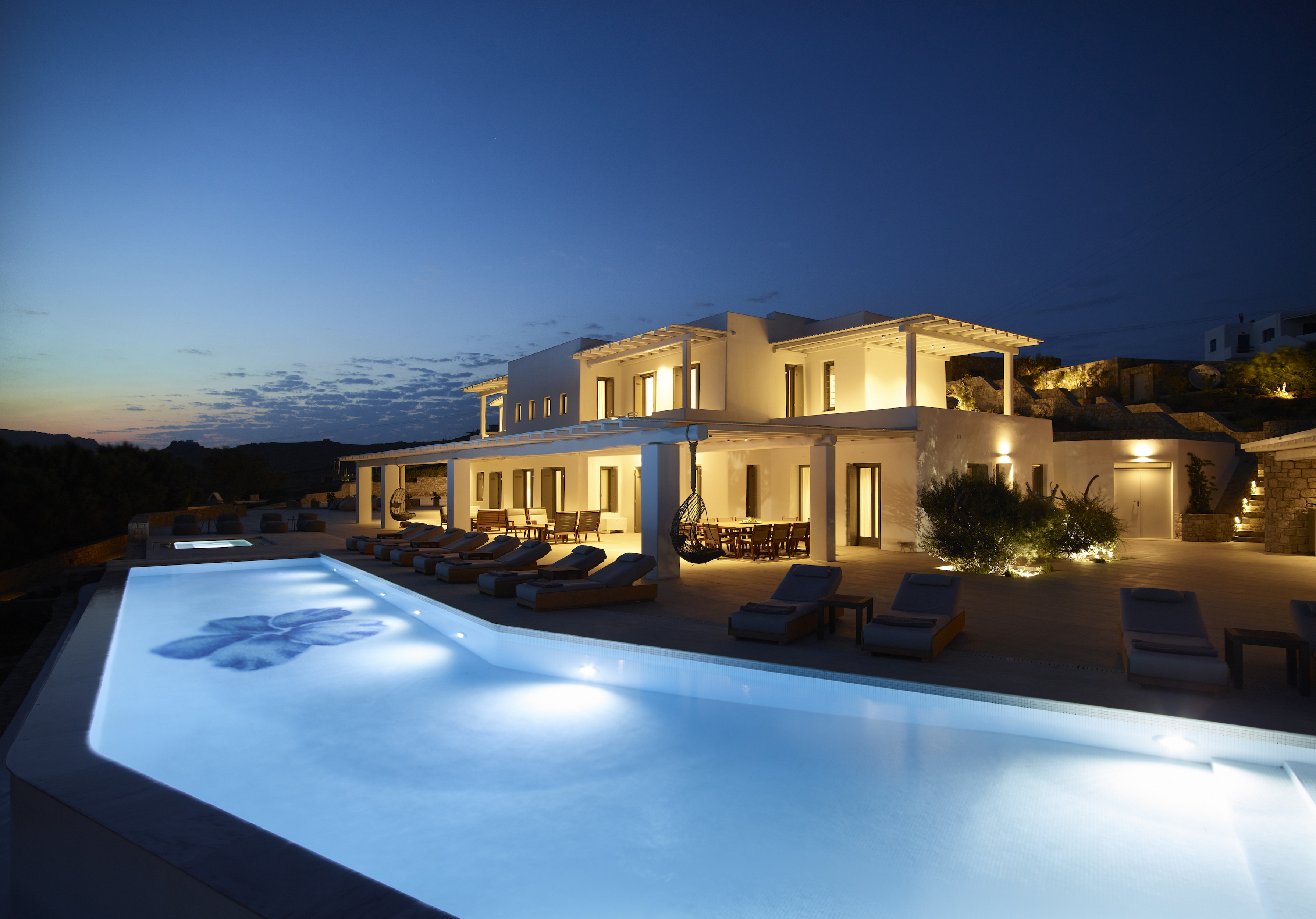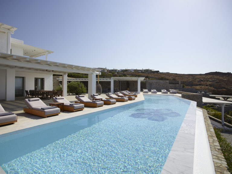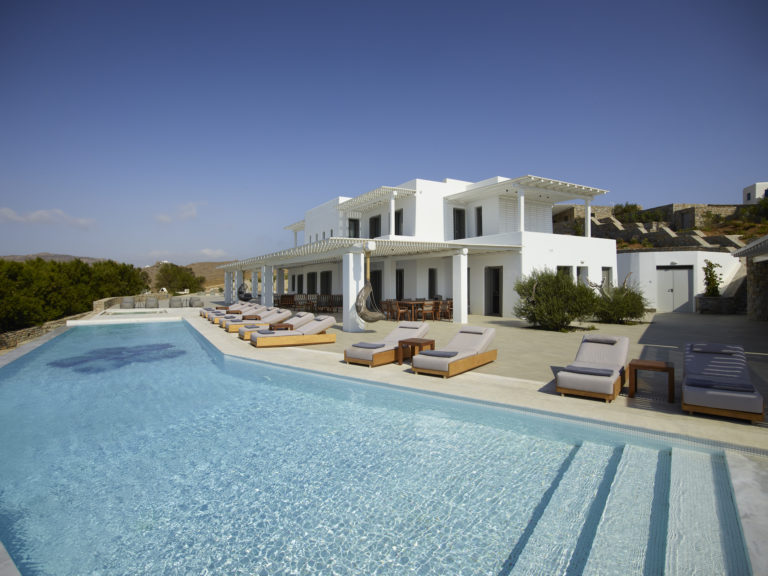 Designed by paying attention to every detail, with an infinity pool boasting unobstructed views, an elegant kitchen and inside and outside dining areas for group gatherings. The villa can host up to thirty six people with sixteen en-suite bedrooms and 2 staff rooms.